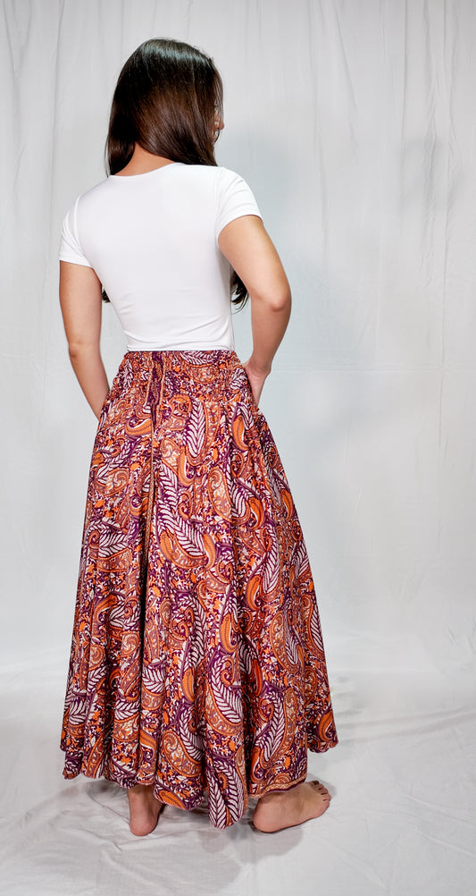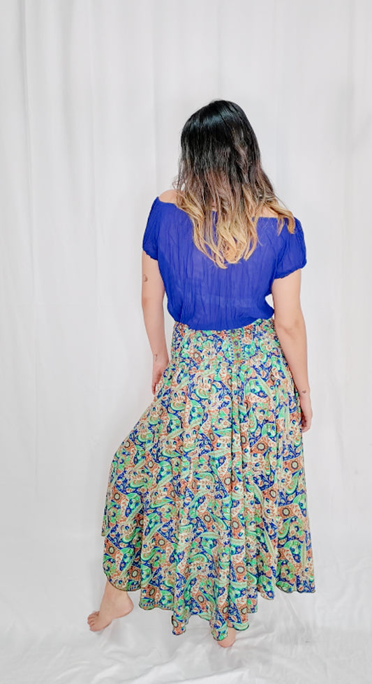 Pantalón Falda Seda Azul O/Fucsia/Verde