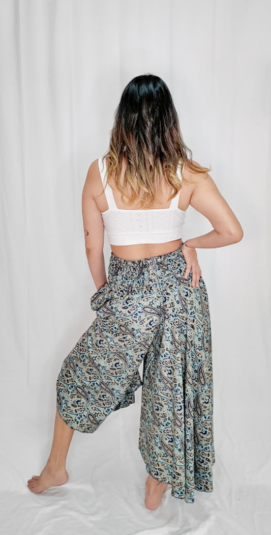 Pantalón Falda Seda Azul Aguamarina/Azul