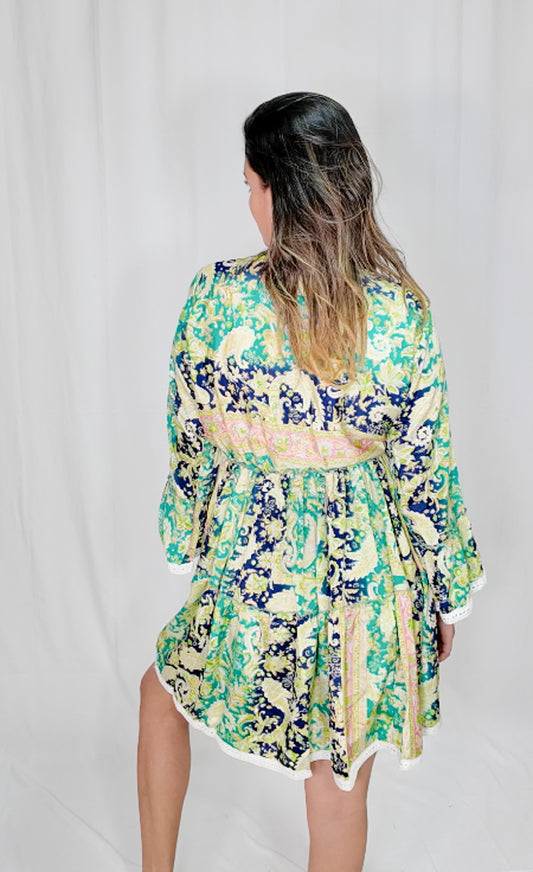 Vestido Corto Boleros Verde/Azul
