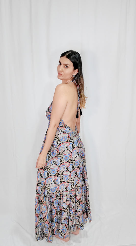 Vestido Largo Boleros Escote Profundo Negro/Azul