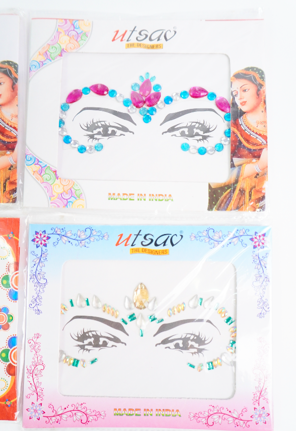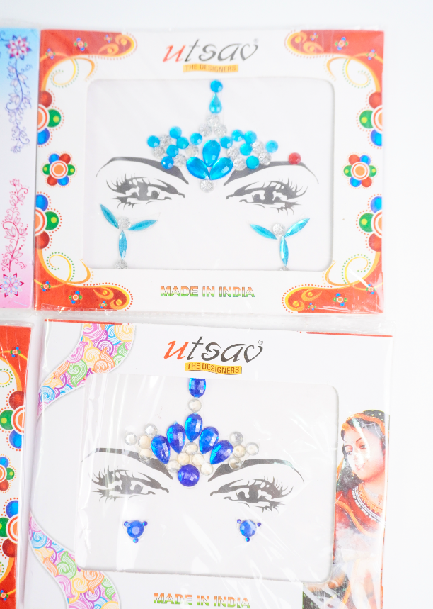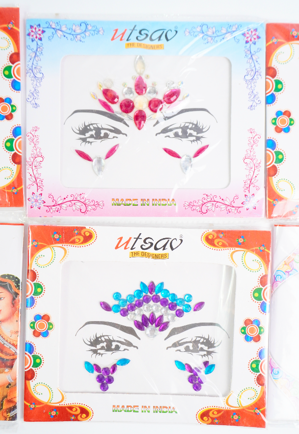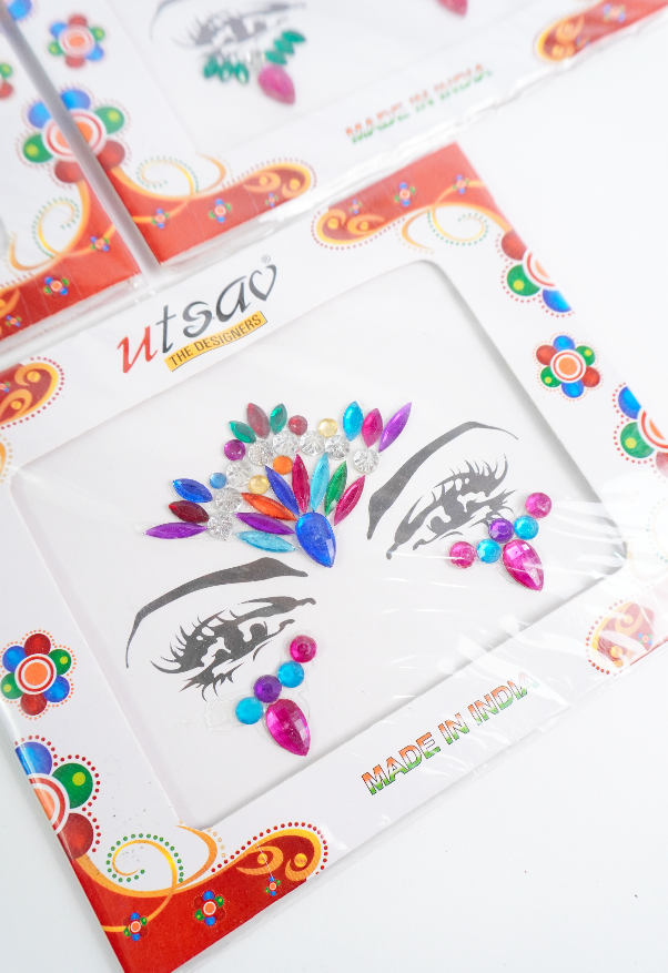 Pegatina decorativa para la cara en diferentes formas y colores.