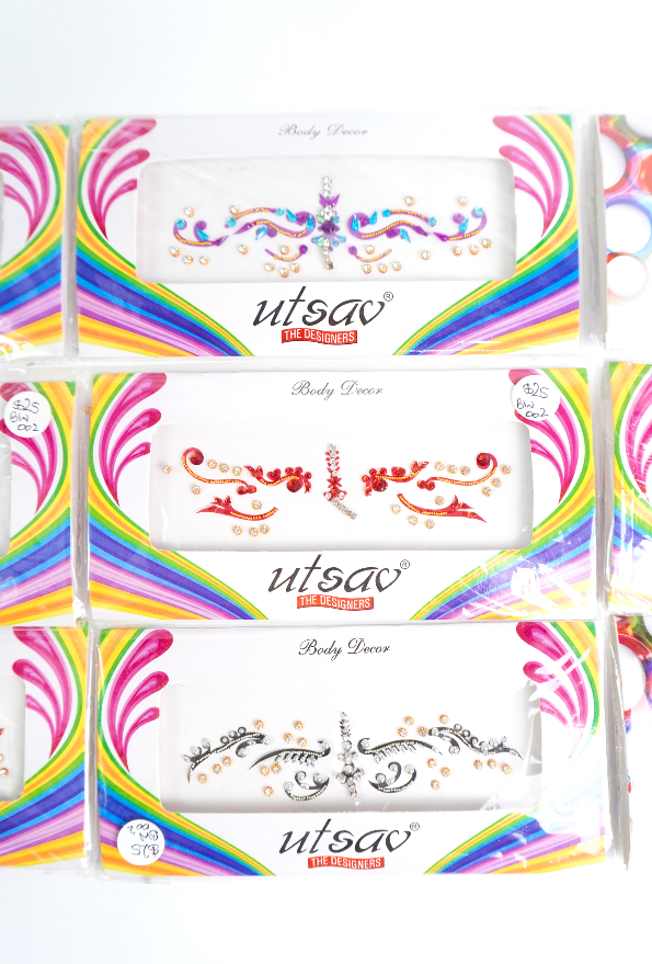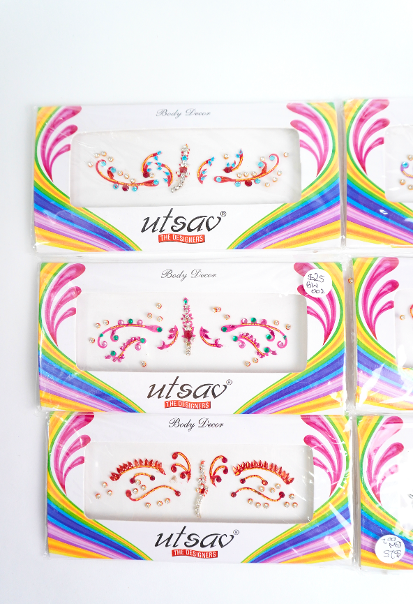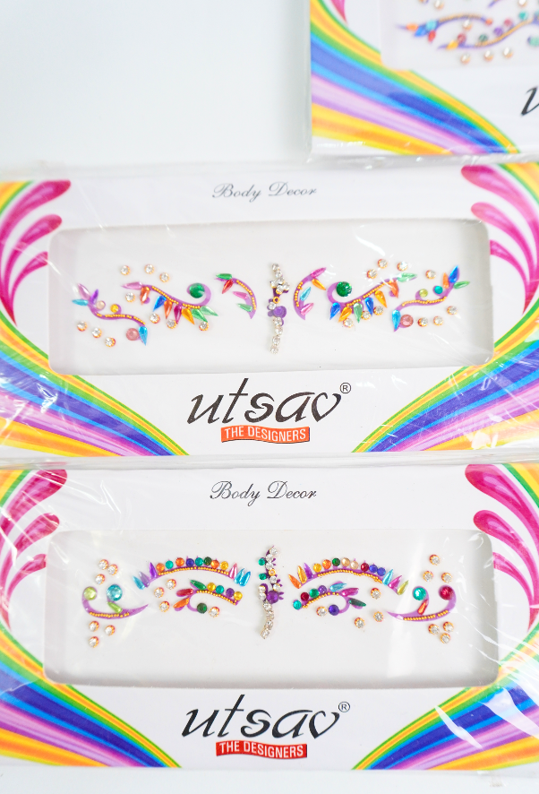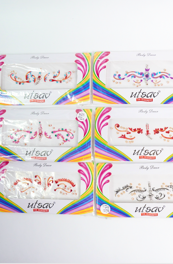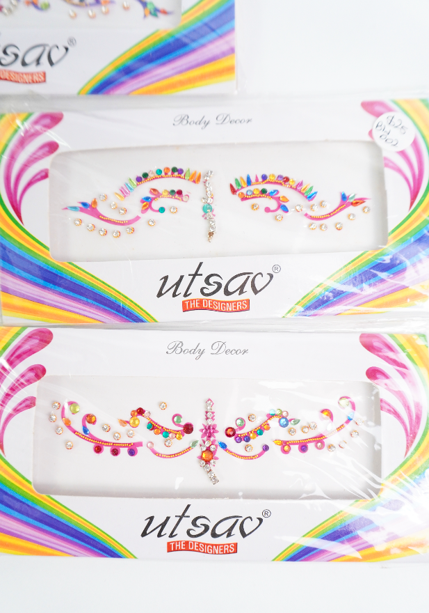 Bindis en diferentes tamaños, formas y colores.