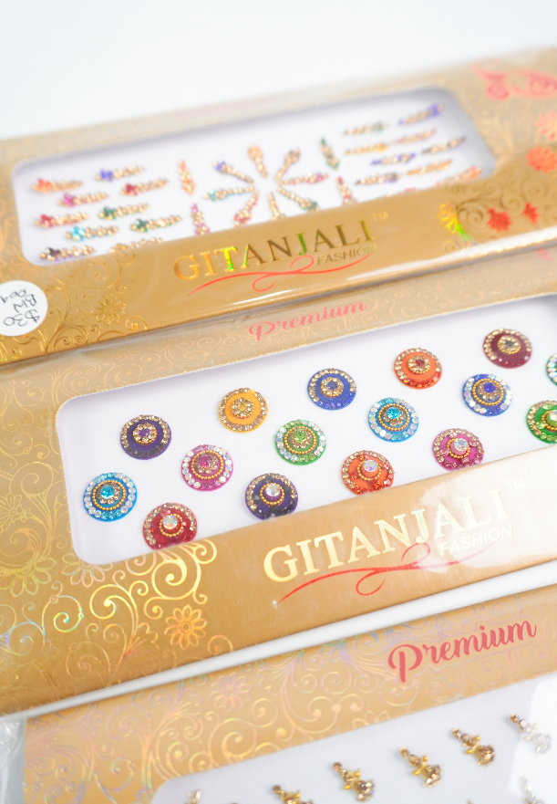 Bindis en diferentes tamaños, formas y colores.