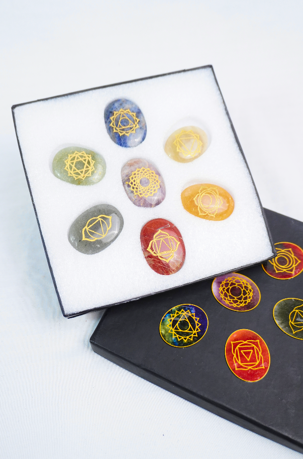 Descubre la magia de nuestros cuarzos especiales, diseñados para armonizar y potenciar cada uno de tus chakras. Cada piedra ha sido cuidadosamente seleccionada y grabada con el símbolo sagrado del chakra correspondiente, asegurando una conexión profunda y única con tu energía interior.