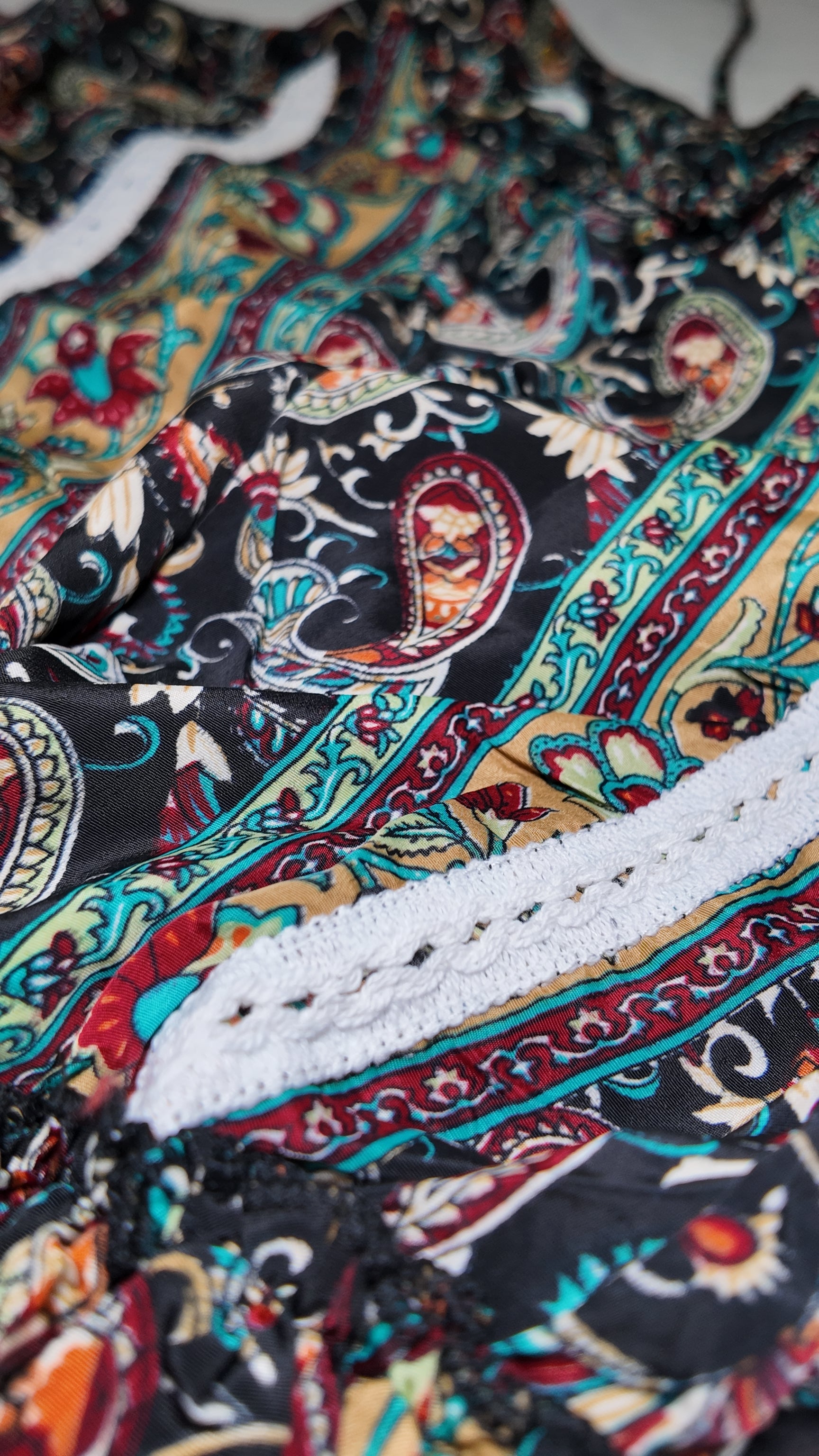 Vestido corto de boleros, manga medio brazo, sesgo blanco en borde y pecho.
